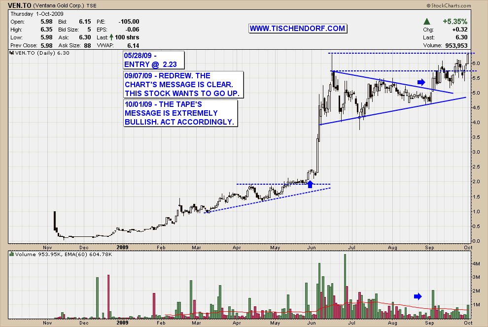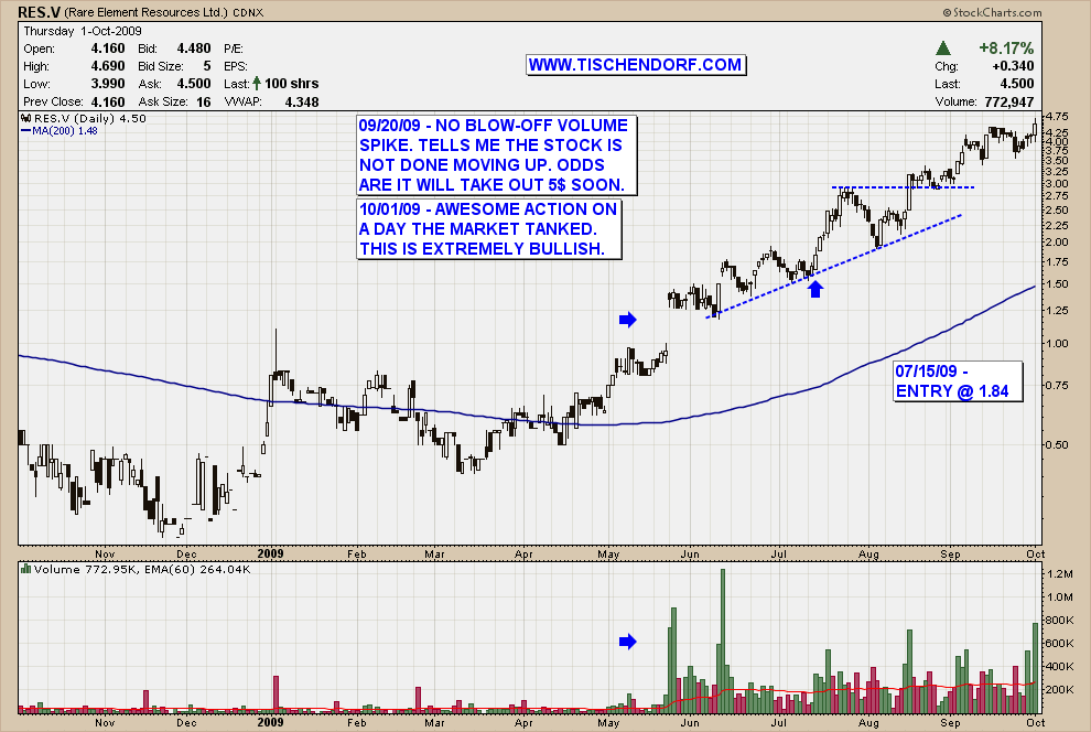 Just two things I observed during the trading day. RES.V – Rare Element Resources and VEN.TO – Ventana Gold were up and literally doing their own thing regardless of what the market did. The tape’s message is unambiguous. These two stocks want up. The tape says the path of least resistance is up. All I can say is: Listen to the tape and act accordingly.