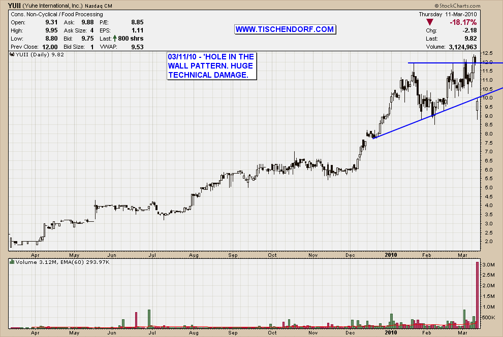 Now that YUII has gapped down the chart is displaying a ‘Hole in the wall pattern’. For more info on this pattern check those two past articles where I mentioned and explained that pattern.