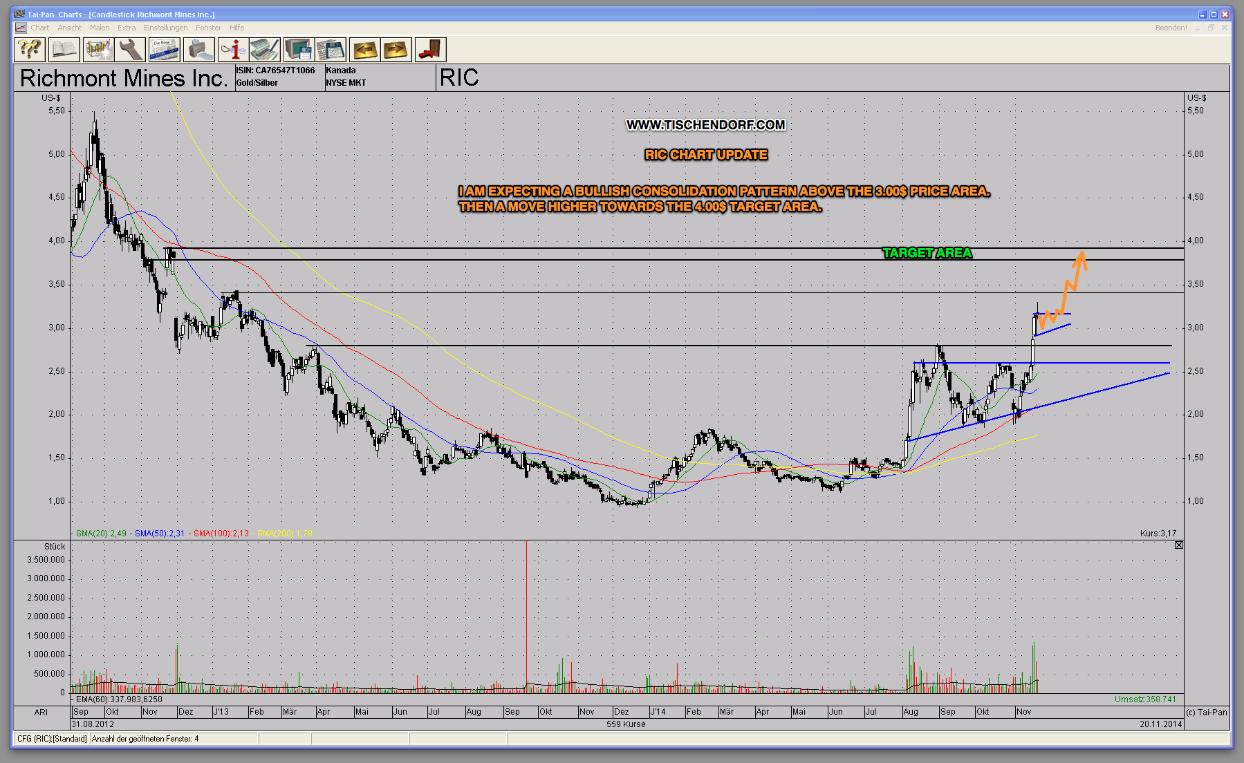 This gold mining stock is clearly one of the best performers. RIC – Richmont Mines might very well be the Needle In the Golden Haystack. Yesterday, the miners were drowning in a sea of red. RIC was one of the very few that managed to close the day in the green. There is no need to know more. This stock is holding up like a champ. Make no mistake, you couldn’t possibly wish for more bullish behaviour. I expect the stock to build a bullish continuation flag pattern. Then a resumption of the trend leading into the pattern and a move higher towards its technical price target around the 4.00$ area.